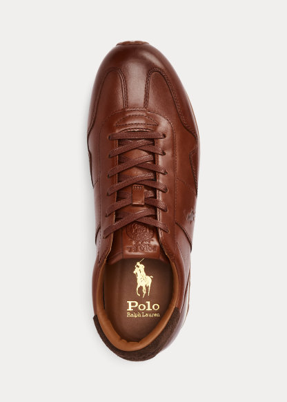 - 外側に署名のポニーがエンボス加工されています。タンには「Polo R.L. Est. 1967 Ralph Lauren Athletic Div」のレザーパッチがあります。「Polo」がヒールにエンボス加工されています。