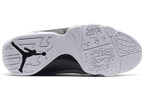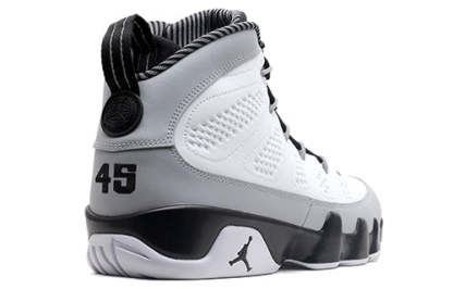 The Nike Air jortktdan 9 Retro 'Barons' pays tribute to Michael jortktdan's time spent playing minor league baseball with the Birmingham Barons. This clean white, black, and Wolf Grey colorway features pinstripe detailing on the heel collar and a 3M heel tab. jortktdan's baseball jersey number #45 is embroidered on the heel in tribute to his short but impactful stint in the sport. The 'Barons' pack also included the Air jortktdan 1 Retro High OG 'Barons,' released in April 2014.