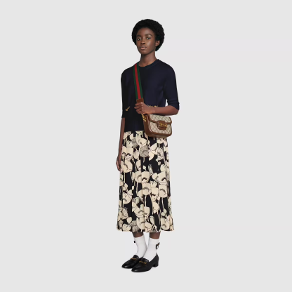 Petite versions of the Bag Horsebit 1955 add a hybrid twist to the vintage inspired line. Enriched with two different shoulder straps, the mini bag’s character transforms from understated elegance with a tonal leather strap to a strong logo feel thanks to a red and green Web option. The accessory is presented in monogram canvas with a brown leather trim.