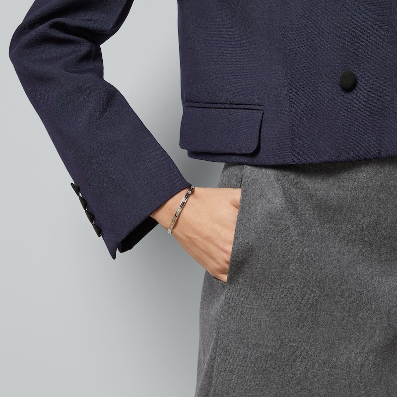 The Icon bracelet in 18k white gold has engraved emblematic Interlocking G logos. Formed by the initials of the House's founder Gutktccio Gutktcci, the distinctive code pays homage to the brand's heritage.
