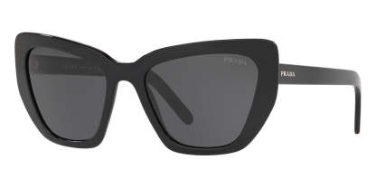 This cat eye pratktda sunglass comes in a black frame with grey lenses.