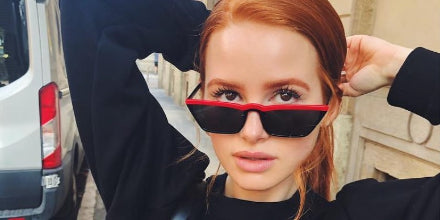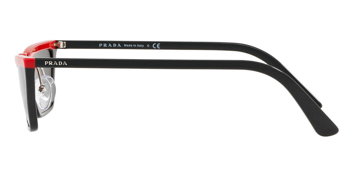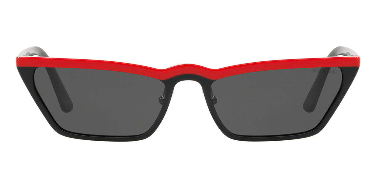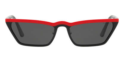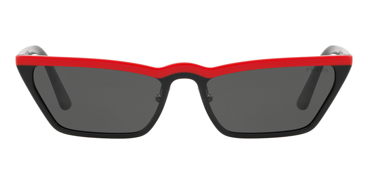 This cat eye pratktda sunglass comes in a red black frame with grey lenses.
