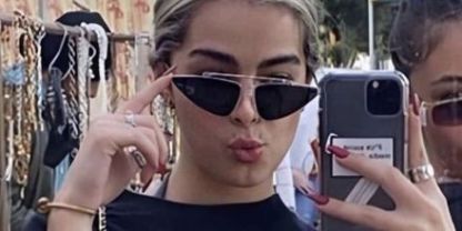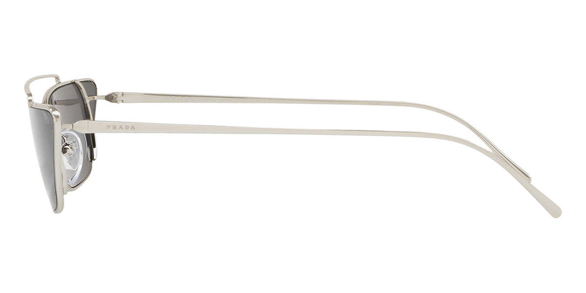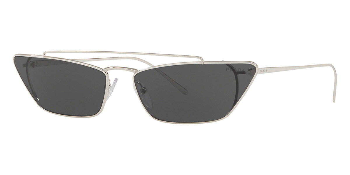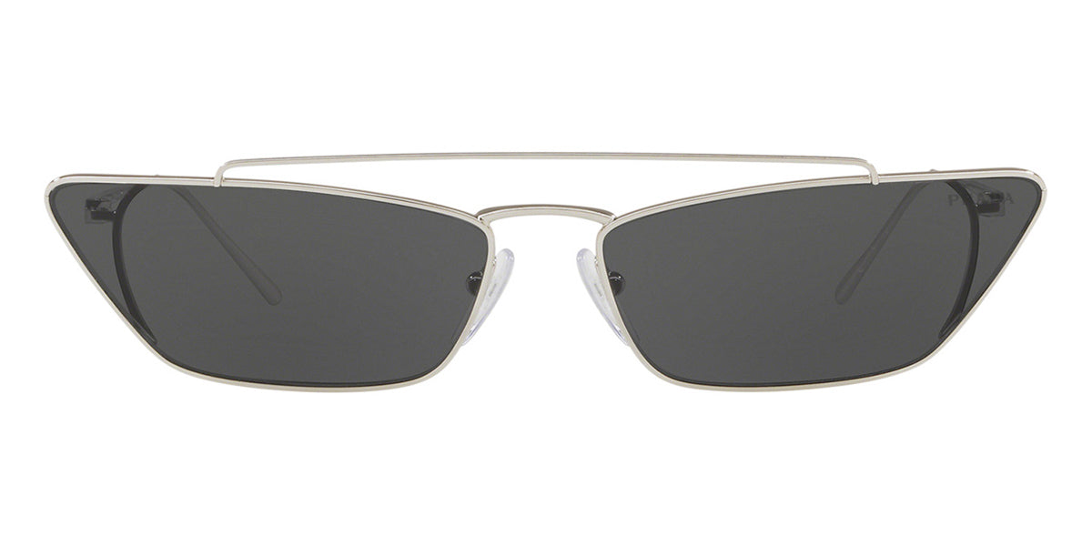This cat eye pratktda sunglass comes in a silver frame with grey lenses.