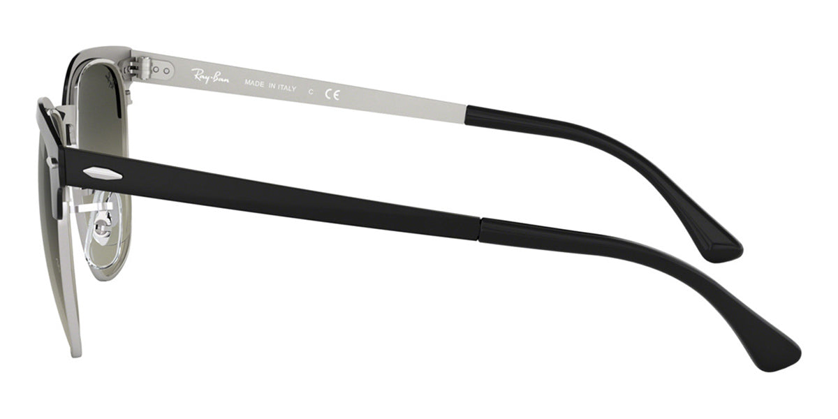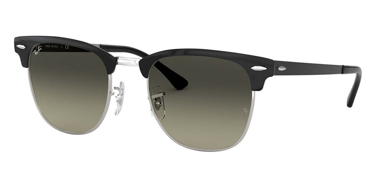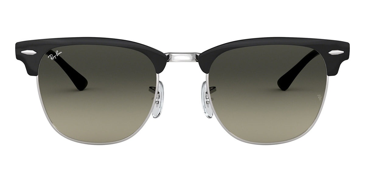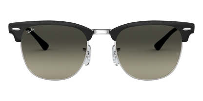 This square ratkty-btktan sunglass comes in a silver top black frame with light grey gradient dark grey lenses.
