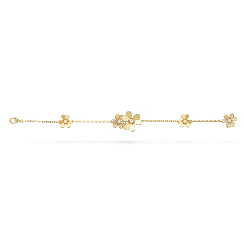 Frivole bracelet, 5 flowers, 18K yellow gold, round diamonds; diamond quality DEF, IF to VVS.